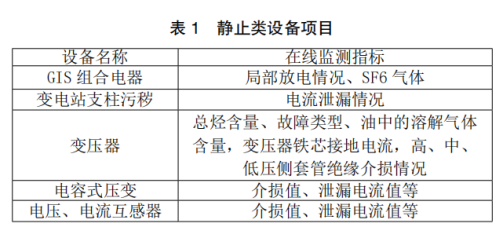 因為電氣設備的種類很多,結構也存在很大差別,因此在線監測絕緣相關項目也都不相同。結合傳感器與設備等特點差異,研究常見的在線監測靜止類設備項目。