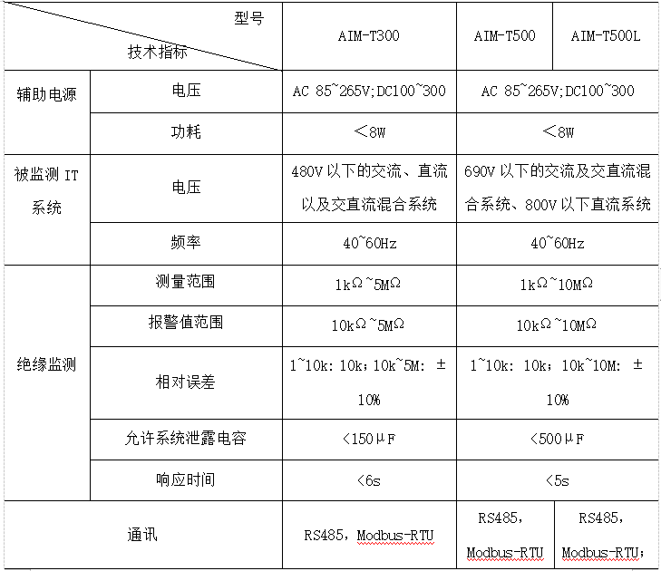 其中AIM-T300適用于450V以下的交流、直流以及交直流混合系統,AIM-T500適用于800V以下的交流、直流以及交直流混合系。AIM-T500L相比AIM-T500增加了絕緣故障定位功能。