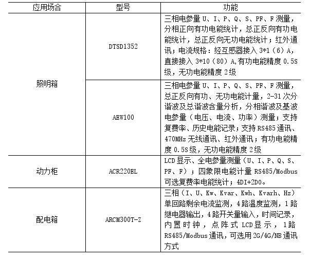 表1 工業(yè)能耗管理設(shè)備選型表