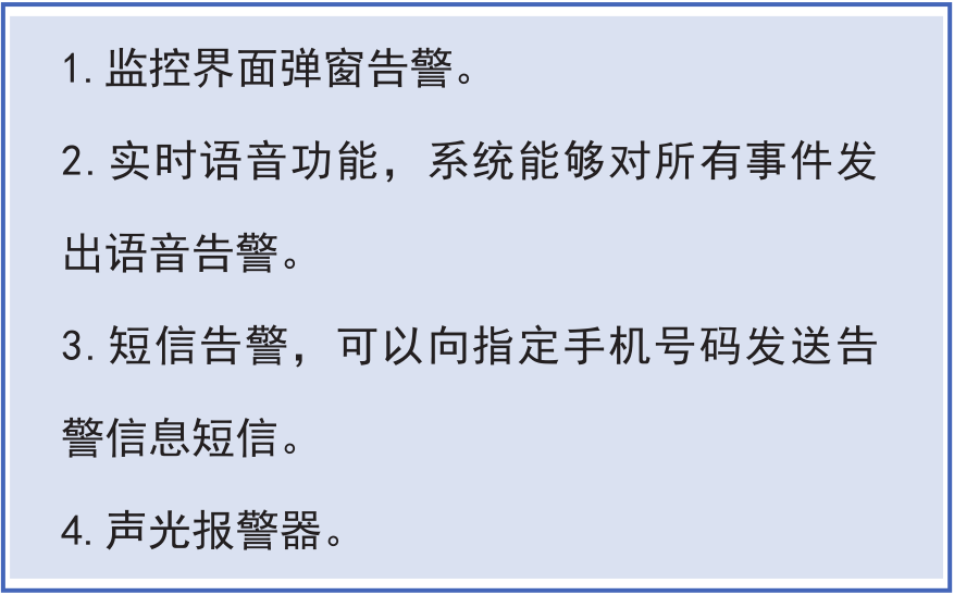 安科瑞智能配電室綜合監控系統具有實時告警功能,系統能夠對配電室溫度、濕度、有害氣體、設備故障或通信故障等事件發出告警。告警方式如右圖所示:
