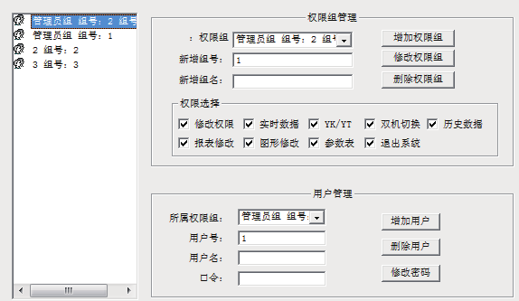 為保障系統安全穩定運行,設置了用戶權限管理功能。通過用戶權限管理能夠防止未經授權的操作(如遙控的操作,數據庫修改等)??梢远x不同級別用戶的登錄名、密碼及操作權限,為系統運行、維護、管理提供可靠的安全保障。