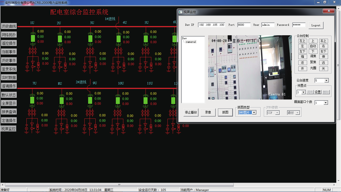 系統把環境、視頻、通風、照明、安全防范、消防、一次設備輔助監控等所有監控量在系統主界面上進行一體化顯示和控制,避免各系統孤立顯示和控制。系統監控可提供視頻監控和圖表監控兩種監控模式。