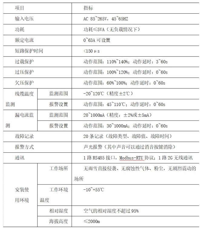 E)電纜溫度監測功能,被測線纜溫度超過報警設定值時,保護器告警或限流保護(可設);