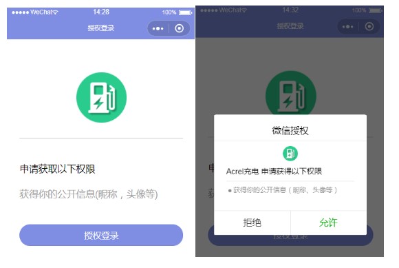用戶通過搜索或者掃碼等途徑初次打開小程序時,會進入這個頁面,需要用戶授權登錄才可以進入小程序主功能頁面,如圖所示: