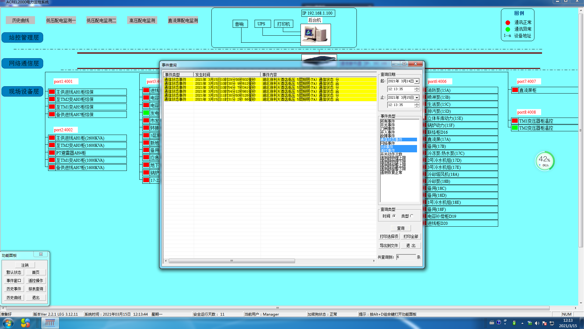 本次項目主要涉及湖北保利大酒店配電房內的網絡多功能儀表、微機保護、直流屏等設備,監控主機位于地下1層的值班室