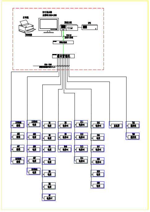 站控管理層針對電力監控系統的管理人員,是人機交互的直接窗口。在湖北保利大酒店配電房改造工程電力監控系統工程中主要指置于地下一層配電室的監控主機。