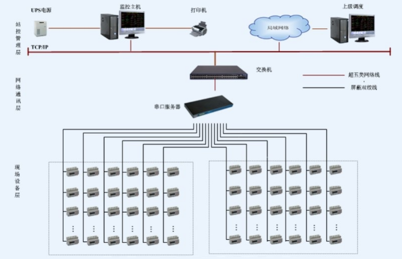 安科瑞Acrel-5000建筑能耗分析管理系統以工作站主機、通訊設備、測控單元為基本工具,為大型公共建筑的實時數據采集、開關狀態監測及遠程管理與控制提供了基礎平臺,它可以和檢測、控制設備構成任意復雜的監控系統。該系統主要采用分層分布式計算機網絡結構,如系統結構圖所示:高密科技孵化器項目能耗系統站控管理層及網絡通訊層?,F場共有46只安科瑞DTSD1352電能表。