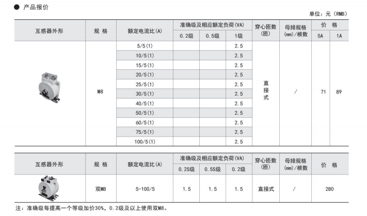 一次電流小,容量2.5VA及以下,用于測量或者保護(hù),多用于低壓抽屜柜等小空間場所。