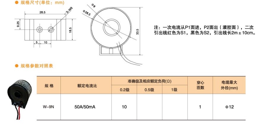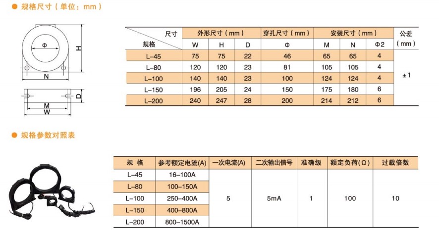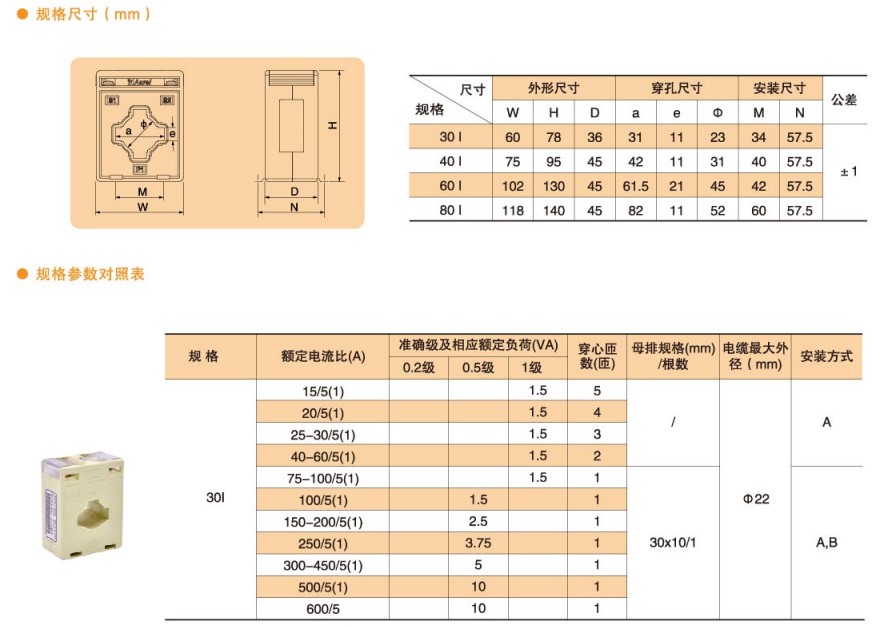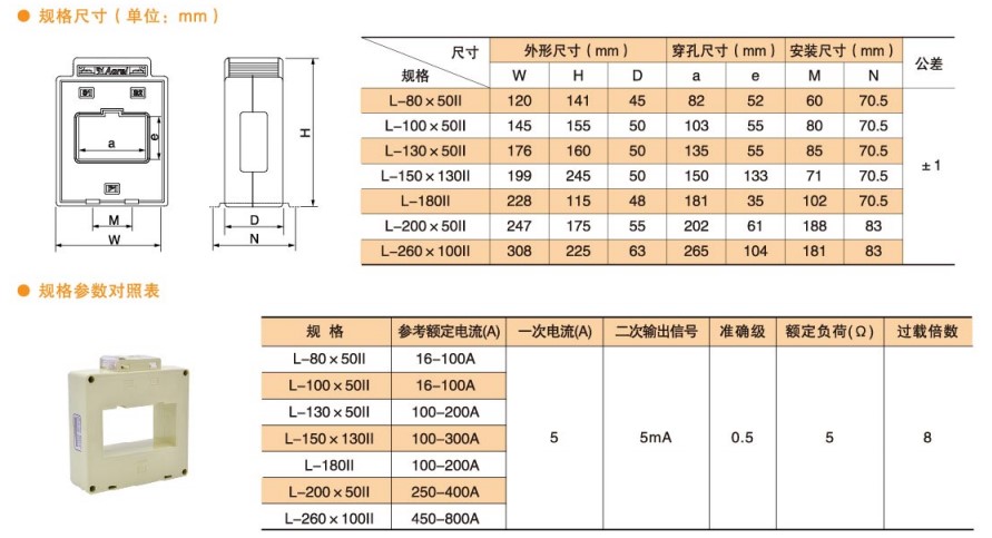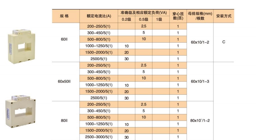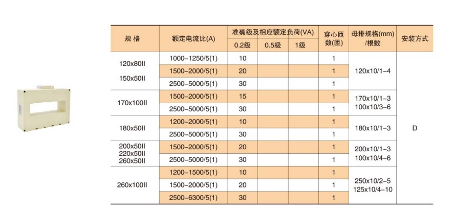 產品翻蓋式設計,外形美觀,接線方便。翻蓋材料選用透明聚碳酸酯,能清楚看到二次引線接線情況。方圓組合孔型,既可穿越電纜,也可穿越匯流排,作為交流電流信號采集元件,一般與測量儀表配套使用廣泛應用于電氣成套。