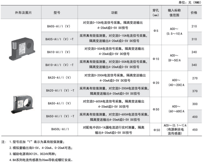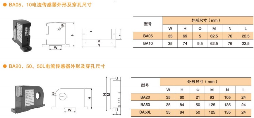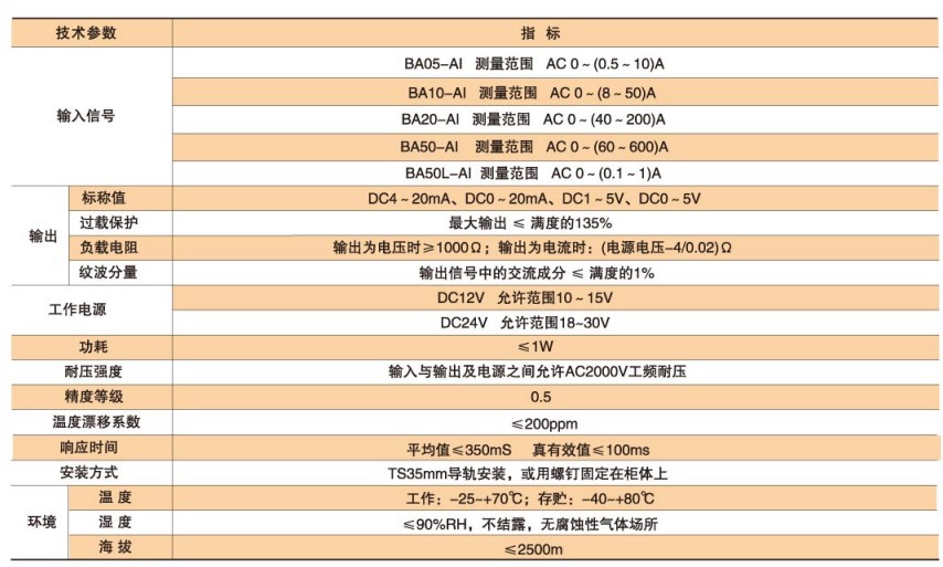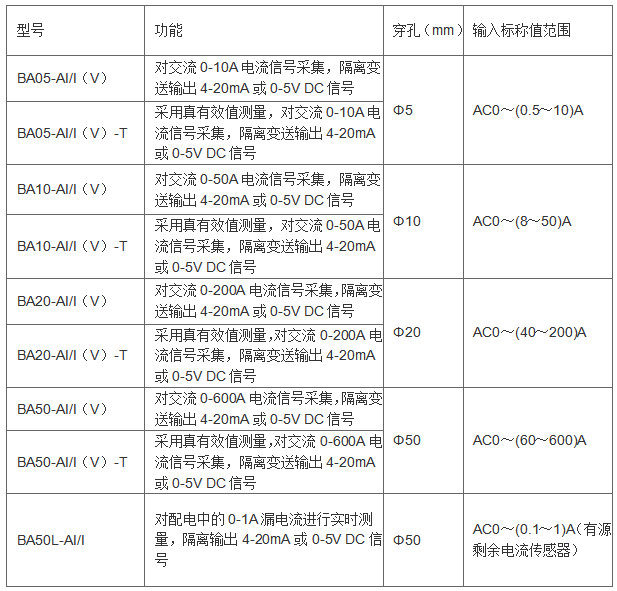 BA系列產(chǎn)品應(yīng)用電磁感應(yīng)原理,對電網(wǎng)中的交流電流進行實時測量,將其隔離變換為標準的直流信號輸出