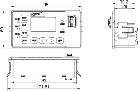 主體IP20,分體顯示模塊IP45(安裝在柜體上)