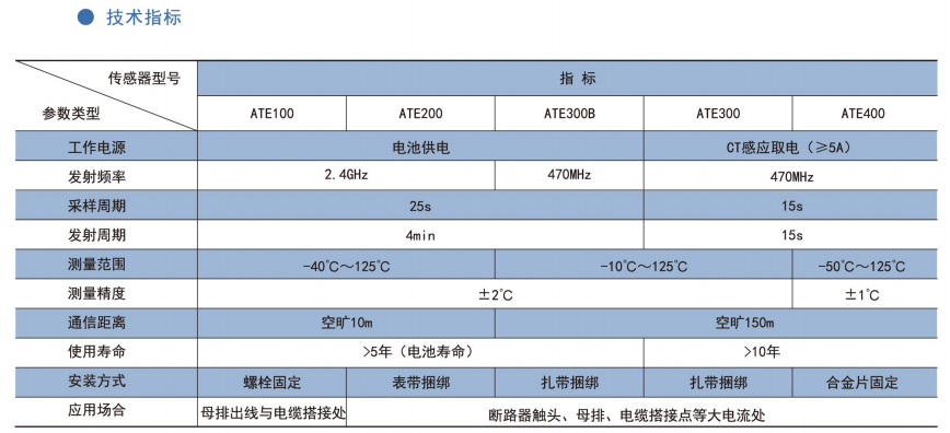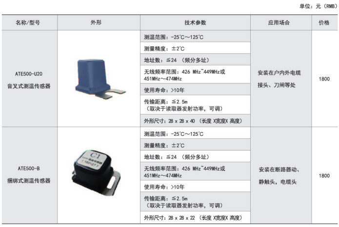 適用于高低壓開關柜內電纜接頭、斷路器觸頭、刀閘開關、高壓電纜中間頭、干式變壓器、低壓大電流等設備的溫度監(jiān)測。
