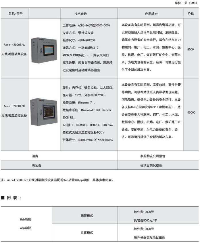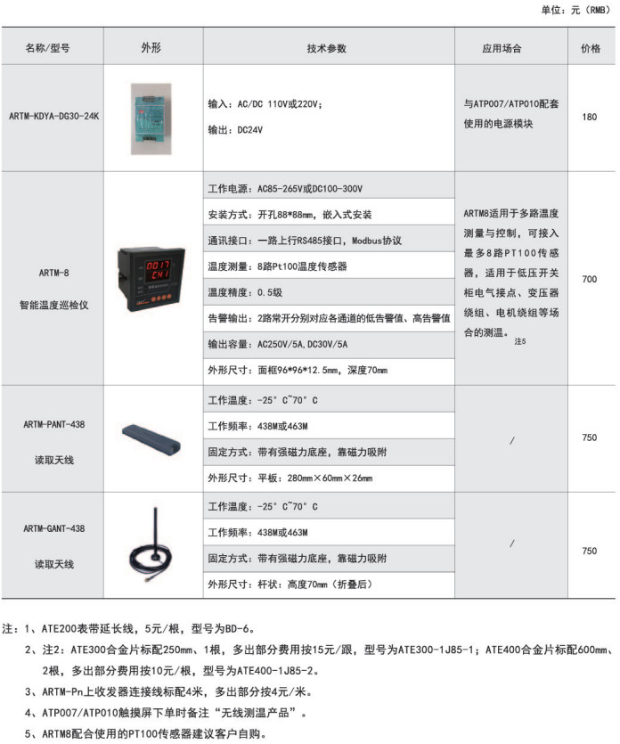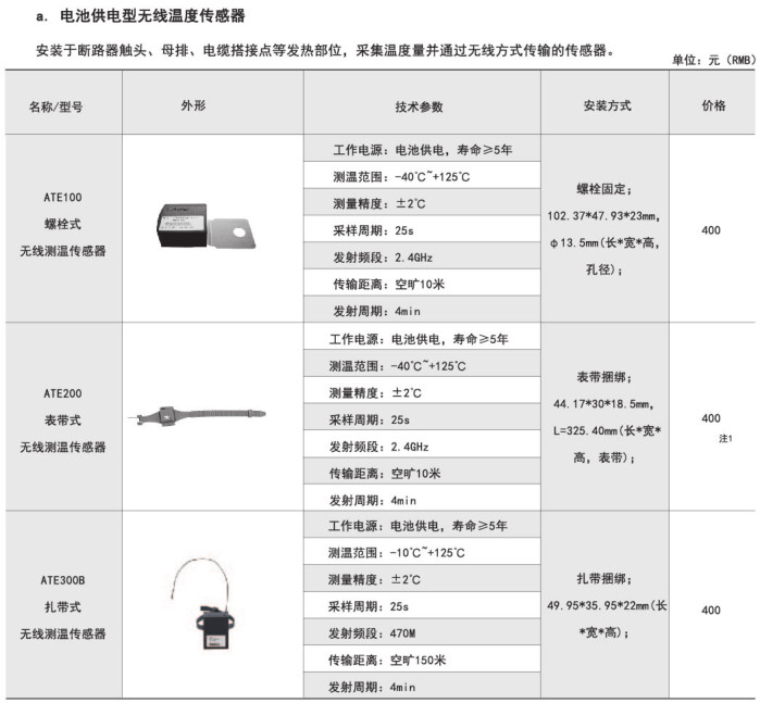 綜上所述,確定型號為:無線測溫裝置:ARTM-P9-3001臺;無線測溫傳感器:ATE3009個