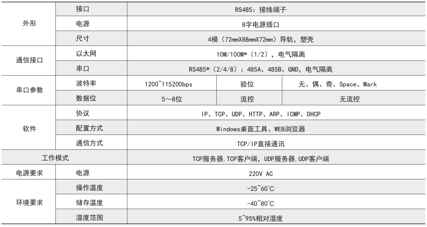 具體型號:Aport100-1E8S 串口服務器