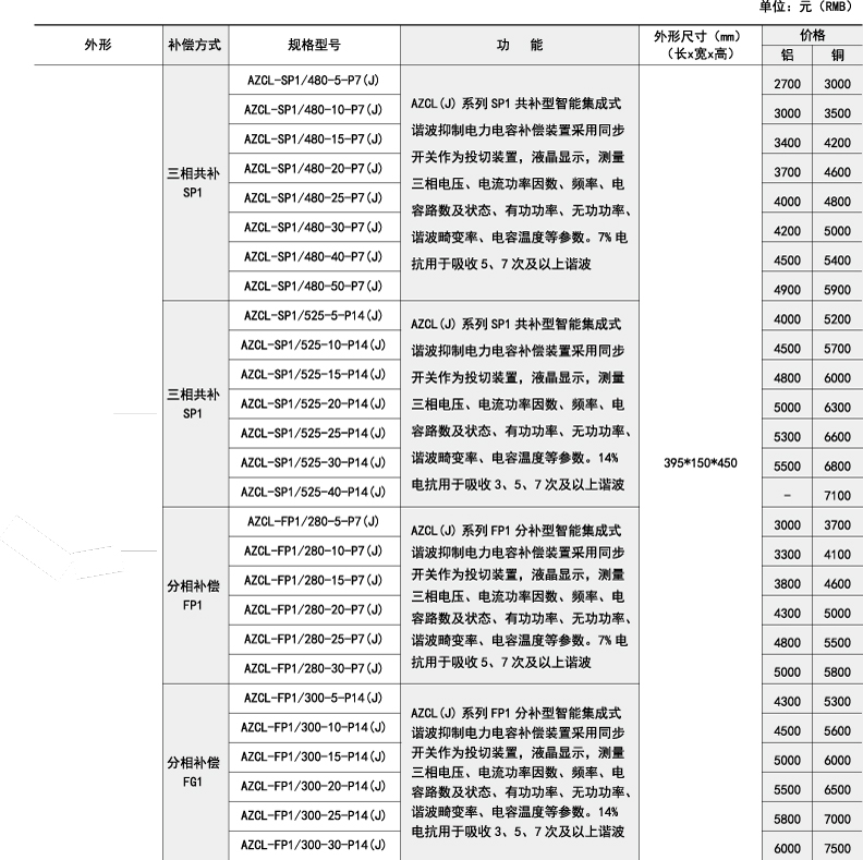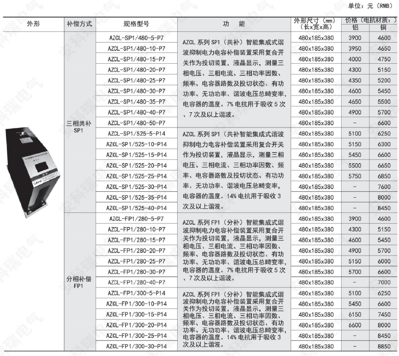 AZCL系列智能集成式諧波抑制電力電容補償裝置是應用于0.4kV、50Hz低壓配電中用于節省能源、降低線損、提高功率因數和電能質量的新一代無功補償設備。其中串接7%電抗器的產品使用于主要諧波為5次、7次及以上的電氣環境,串接14%電抗器的產品使用于主要諧波為3次及以上的電氣環境。
