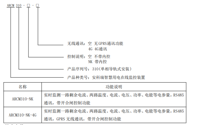 ARCM310 智慧用電在線監(jiān)控裝置(以下簡稱裝置)是針對 0.4kV 以下的 TT、TN 系統(tǒng)設(shè)計(jì)的智能電力裝置, 具有單相交流電測量、漏電監(jiān)測、溫度監(jiān)測、內(nèi)控開合閘以及 RS485 通訊或 GPRS 無線通訊功能,通過對配電 回路的剩余電流、導(dǎo)線溫度等火災(zāi)危險(xiǎn)參數(shù)實(shí)施監(jiān)控和管理。