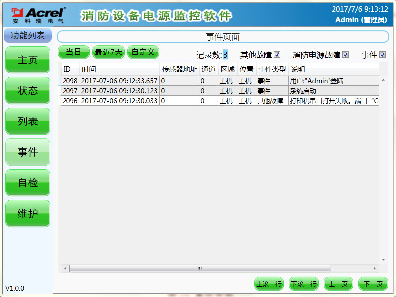 用戶于該界面內可查詢任意時段內相應報警或動作類型下的記錄,各級操作權限均可查看該界面的信息。