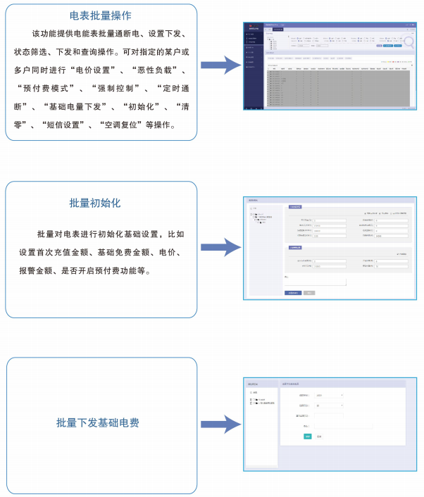 可以進(jìn)行免費(fèi)基礎(chǔ)電量設(shè)置、預(yù)購(gòu)電量、無費(fèi)關(guān)斷、用電情況查詢、退費(fèi)管理、支持中途更換操作員、打印報(bào)表等。