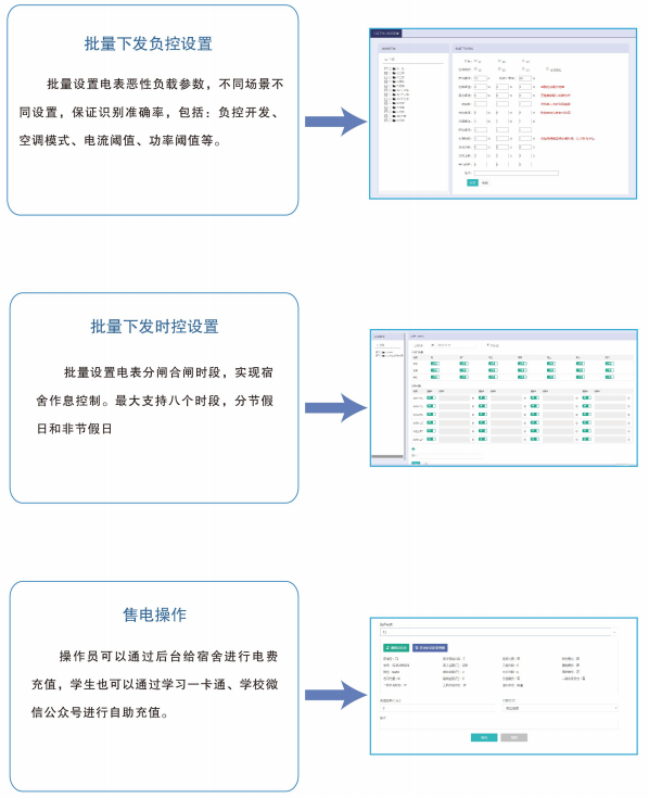 高校宿舍預(yù)付費(fèi)電控系統(tǒng)集電能計(jì)量、收費(fèi)管理、用電過程管理等功能于一體,具備遠(yuǎn)程實(shí)時(shí)抄表計(jì)量、控制學(xué)生作息、惡性負(fù)載識(shí)別預(yù)警、校園一卡通自助繳費(fèi)、微信查詢、打印用能報(bào)表等功能,創(chuàng)建節(jié)約校園、安全校園,方便校方進(jìn)行一體化、信息化管理,并支持和智慧校園系統(tǒng)的數(shù)據(jù)對(duì)接。